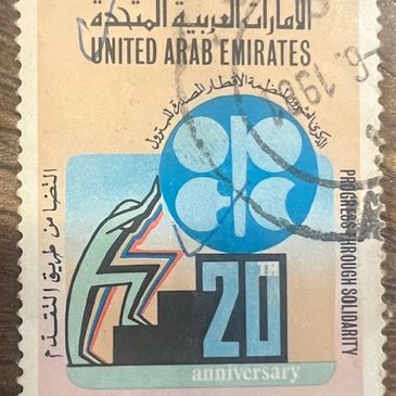 This stamp is special to me because it is from the country where I live, the United Arab Emirates. I just celebrated the 53rd birthday of the UAE and this stamp is from it's 20th year being a country!