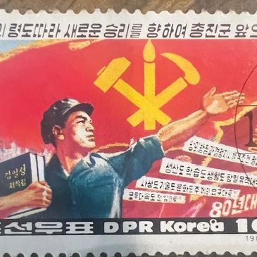 I was able to travel to the border of North Korea and South Korea in 2024 and found my visit fascinating. This stamp shows the communist values of the country,